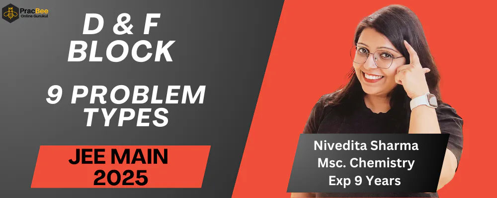 In this article and video attached, we are going to cover D & F Block Elements with the Lanthanide series and Actinide series. It talks in detail about the 9 TYPES OF PROBLEMS asked in JEE Main in D & F Block Elements, and strategies to solve them. It is part of PracBee's Revision Program. In this program we are trying to cover whole syllabus of JEE Main in 10 Weeks in a very effective manner. We are also taking mock tests for JEE Main and discussing that live in our classes.