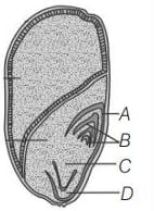 11. Identify the parts labelled as A to D in structure of seed given below.